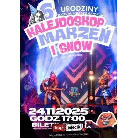 bilety: Daj się porwać w niezwykłą podróż po najpiękniejszych bajkach świata! Wraz z muzyką przeniesiemy się do mroźnej krainy Anny i Elzy, odkryjemy zaczarowany świat Pocahontas i zanurzymy się w podwodnym królestwie Małej Syrenki. Spotkamy odważną Vaianę, młodego Herkulesa, buntowniczą Meridę i czarującego Aladyna - a każdy z nich opowie nam o marzeniach, przyjaźni i odwadze. Specjalnie zaaranżowane utwory, autorskie dialogi i zachwycająca choreografia sprawią, że koncert stanie się spójnym i magicznym widowiskiem muzycznym dla całej rodziny! Barwne kostiumy, imponująca scenografia, gra świateł i efekty specjalne sprawią, że przeniesiesz się wprost do świata Disneya. A podczas występu pojawi się wyjątkowy gość - Król Lew! Kalejdoskop Marzeń i Snów artyści: Różni artyściDaj się porwać w niezwykłą podróż po najpiękniejszych bajkach świata! Wraz z muzyką przeniesiemy się do mroźnej krainy Anny i Elzy, odkryjemy zaczarowany świat Pocahontas i zanurzymy się w podwodnym królestwie Małej Syrenki. Spotkamy odważną Vaianę, młodego Herkulesa, buntowniczą Meridę i czarującego Aladyna – a każdy z nich opowie nam o marzeniach, przyjaźni i odwadze. Bilety do nabycia na: KupBilecik.pl |