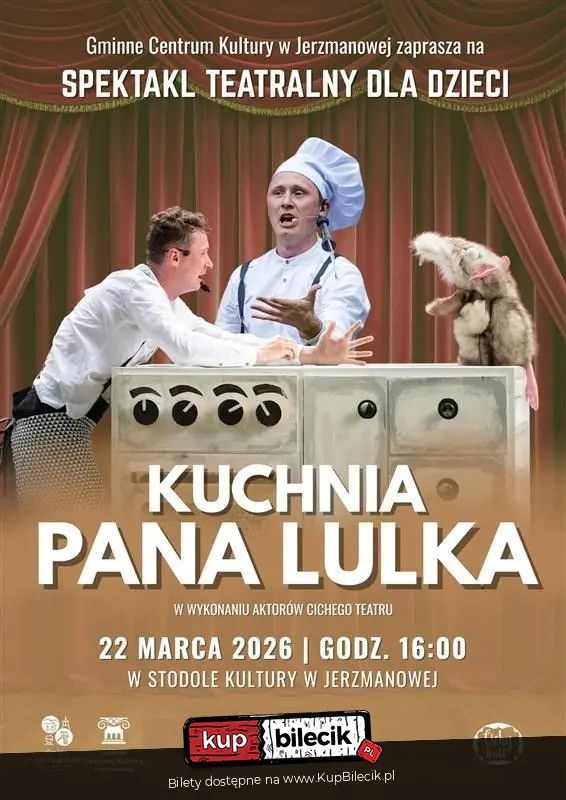 bilety: Zapraszamy na wyjątkowo zabawny spektakl dla dzieci. Przeżyjmy razem niezwykłą przygodę! "Kuchnia Pana Lulka" - Wesoły dzień pracy pewnego Kucharza, który przez plotki jest na skraju bankructwa. Wesoły splot wydarzeń doprowadzi do szczęśliwego słodkiego zakończenia. Spektakl jest połączeniem cyrku z teatrem lalkowym- Pan Lulek bowiem, w swojej kuchni ma małego lokatora, który bardzo mu przeszkadza w prowadzeniu restauracji ale ostatecznie pomoże w kryzysowej sytuacji. Bilety do nabycia na: KupBilecik.pl"Kuchnia Pana Lulka" - spektakl dla dzieci artyści: Różni artyści"Kuchnia Pana Lulka" - Wesoły dzień pracy pewnego Kucharza, który przez plotki jest na skraju bankructwa. Wesoły splot wydarzeń doprowadzi do szczęśliwego słodkiego zakończenia. Spektakl jest połączeniem cyrku z teatrem lalkowym- Pan Lulek bowiem, w swojej kuchni ma małego lokatora, który bardzo mu przeszkadza w prowadzeniu restauracji ale ostatecznie pomoże w kryzysowej sytuacji. Bilety do nabycia na: KupBilecik.pl |